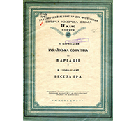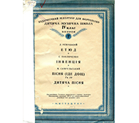 Бібліографічний опис: Педагогічний репертуар: [Ноти] для фортепіано: Музичне училище. 1-2 курси: Твори українських радянських композиторів. [Вип.] 6. -К.: Мистецтво, 1963. - 36 с.